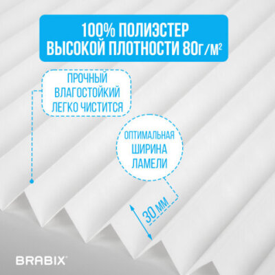 Жалюзи-плиссе, штора тканевая самоклеящаяся BRABIX, 120х180 см, СТАНДАРТ+, 80 г/м2, цвет белый, 1 шт., 700010