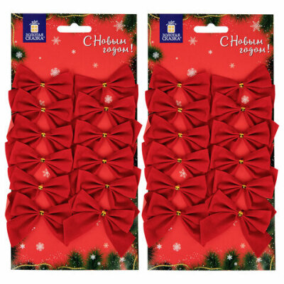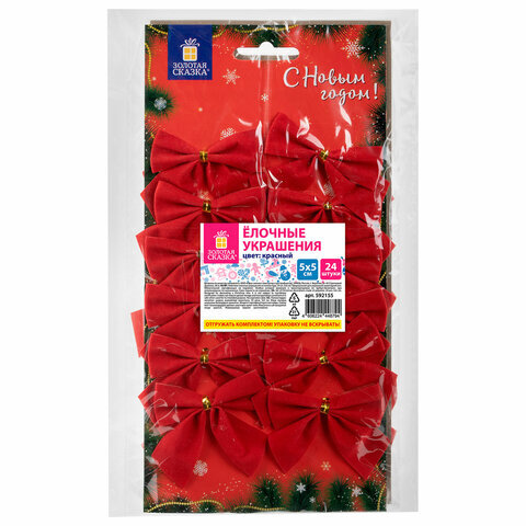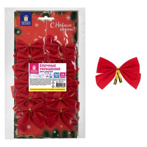 Украшение ёлочное "Бантики", КОМПЛЕКТ 24 шт., 5х5 см, красные, ЗОЛОТАЯ СКАЗКА, 592155