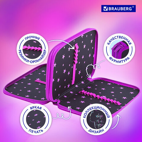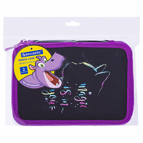 Пенал BRAUBERG, 2 отделения, полиэстер, 21х14 см, "Magic Cat", 271542