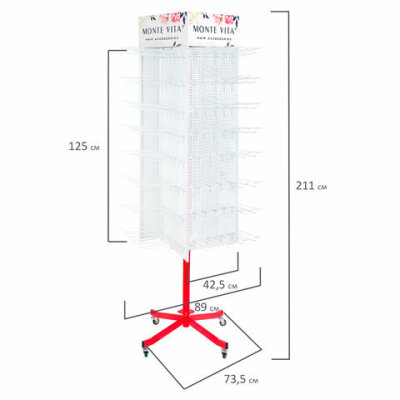 Стойка для размещения товара напольная MONTE VITA (МОНТЕ ВИТА), 211x58x58 см, 150 крючков, 507505