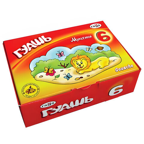 Гуашь ГАММА "Мультики", 6 цветов по 20 мл, картонная упаковка, 221030