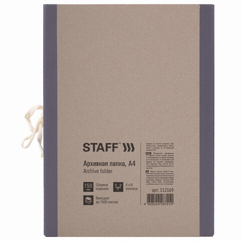 Папка архивная А4 "Форма 21", 150 мм, переплетный картон/бумвинил, завязки, до 1500 л., STAFF, 112169