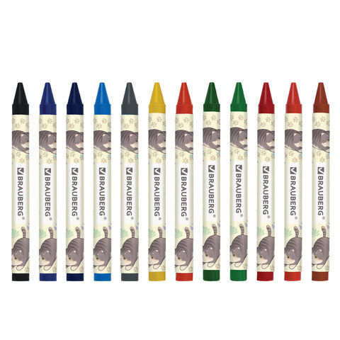 Восковые мелки BRAUBERG "МИЛЫЕ КОТЫ", НАБОР 12 цветов, 273229
