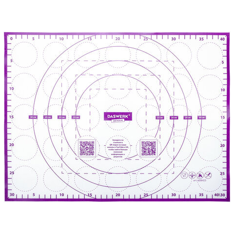 Коврик силиконовый для раскатки/запекания 30х40 см, фиолетовый, DASWERK (ДАСВЕРК), 608423