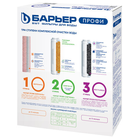 Картриджи сменные БАРЬЕР "ПРОФИ Комплекс", 3 ступени, ресурс 10000 л, КОМПЛЕКТ 3 шт., Р143Р00