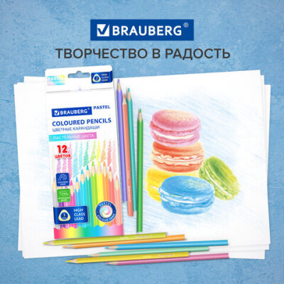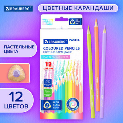 • Трехгранные цветные карандаши высокого качества из натурального дерева BRAUBERG серии PASTEL обеспечивают гладкое письмо благодаря мягкому грифелю. Особое качество красящего пигмента гарантирует приятные пастельные цвета.