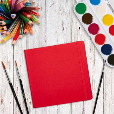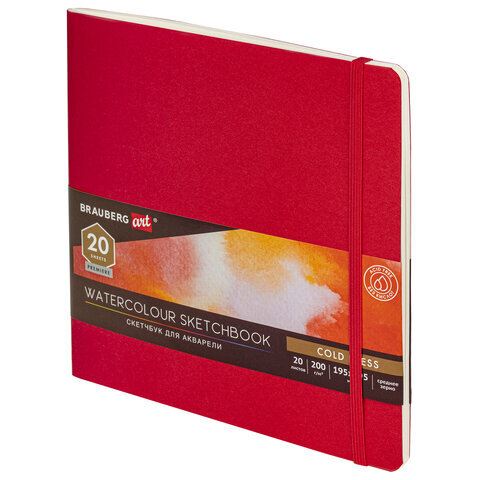 Скетчбук для акварели, 200 г/м2, 195х195 мм, среднее зерно, 20 л., сшивка, резинка, КРАСНЫЙ, BRAUBERG ART PREMIERE, 113258