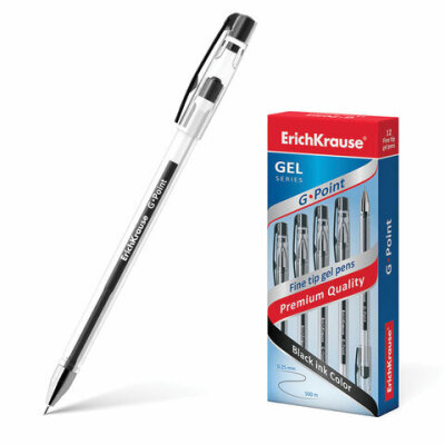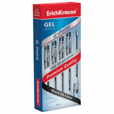 Ручка гелевая ERICH KRAUSE "G-Point", ЧЕРНАЯ, игольчатый узел 0,38 мм, линия письма 0,25 мм, 17628