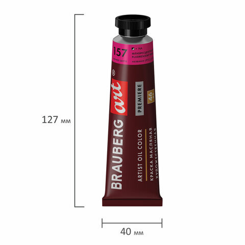 Краска масляная художественная BRAUBERG ART PREMIERE, 46 мл, проф. серия, ФЛУОРЕСЦЕНТ РОЗОВАЯ,191413
