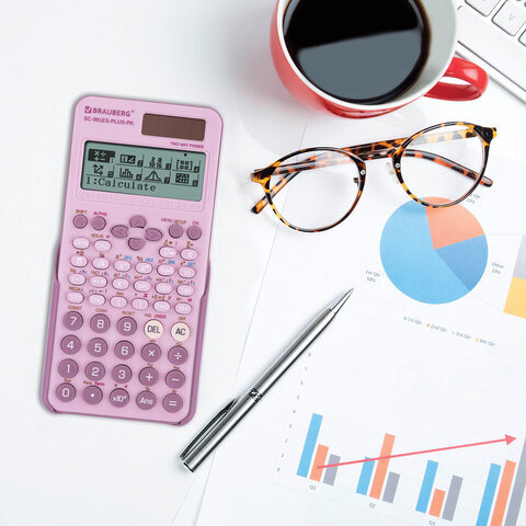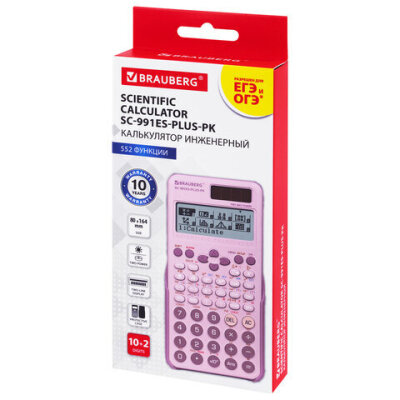 Калькулятор инженерный BRAUBERG SC-991ES-PLUS-PK (164х80 мм), 552 функции, 10+2 разряда, РОЗОВЫЙ, 272654