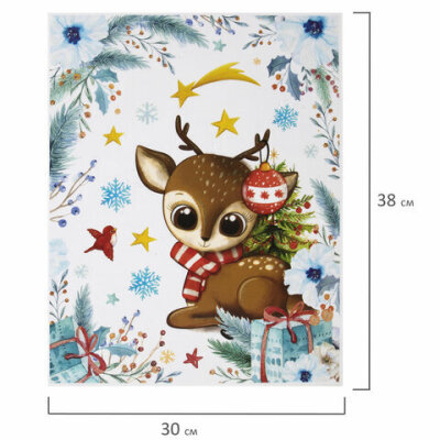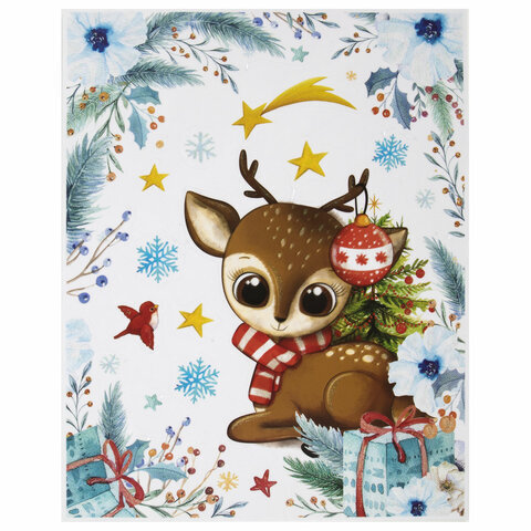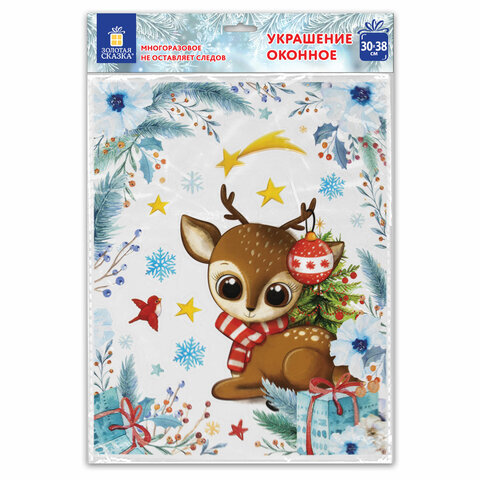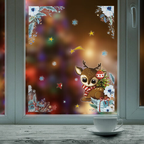 Наклейка для окон двусторонняя МНОГОРАЗОВАЯ 30х38 см, "Оленёнок", ЗОЛОТАЯ СКАЗКА, 591925