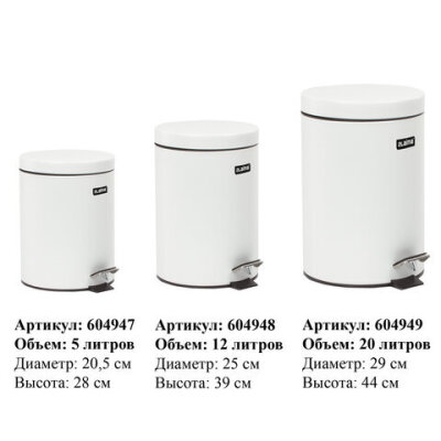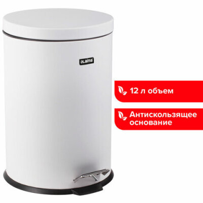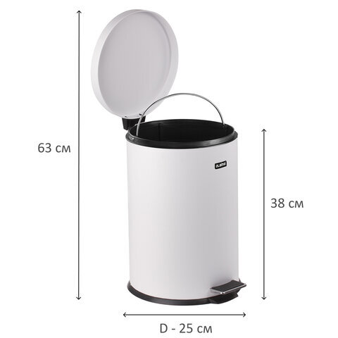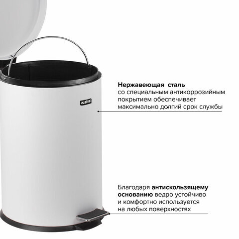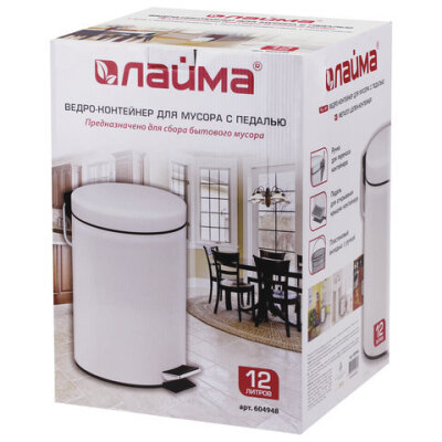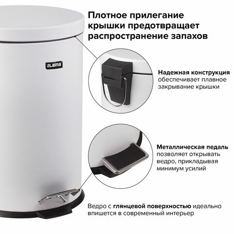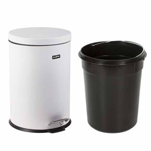 Ведро мусорное с педалью 12 литров "Classic", БЕЛОЕ ГЛЯНЦЕВОЕ, металлическое, со съемным внутренним ведром, LAIMA, 604948