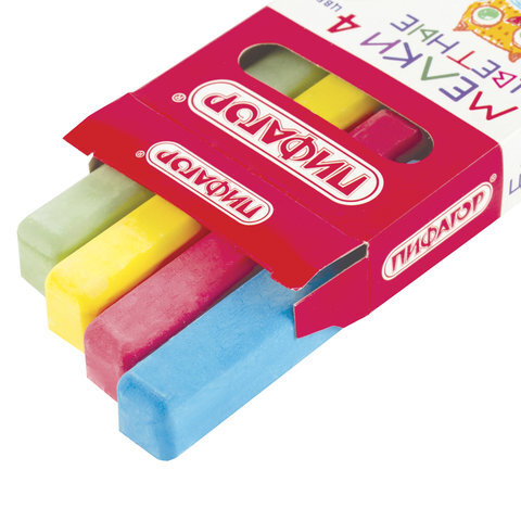 Мел цветной квадратный 4 штуки, ПИФАГОР, картонная упаковка, европодвес, 221977