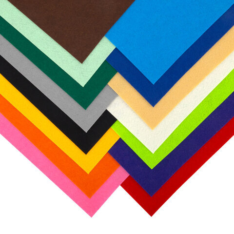 Фетр жесткий А4, 1 мм, 15 листов, 15 цветов, плотность 160 г/м2, ОСТРОВ СОКРОВИЩ, 665668