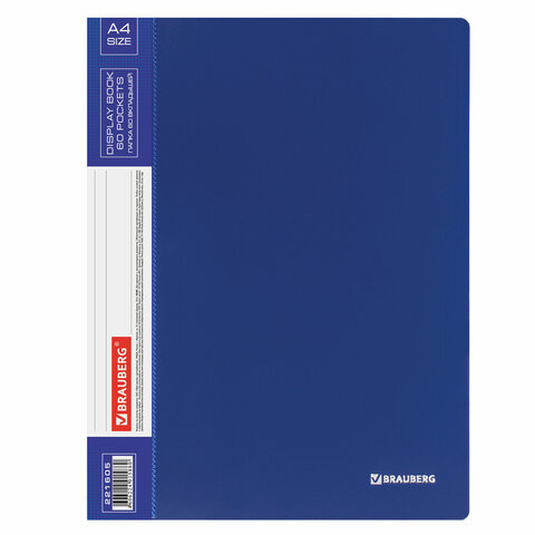 Папка 60 вкладышей BRAUBERG стандарт, синяя, 0,8 мм, 221605