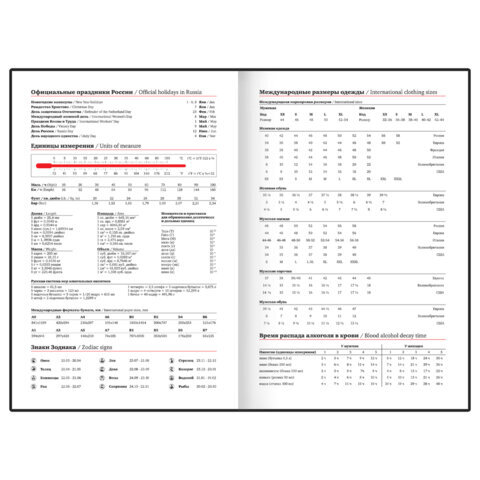 | Особенности | закладка-ляссе, комбинированная обложка, перфорация уголков, скругленные углы, справочная информация, фиксатор для ручки |