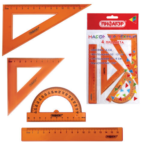 Набор чертежный геометрический ПИФАГОР предназначен для выполнения чертежных работ.
