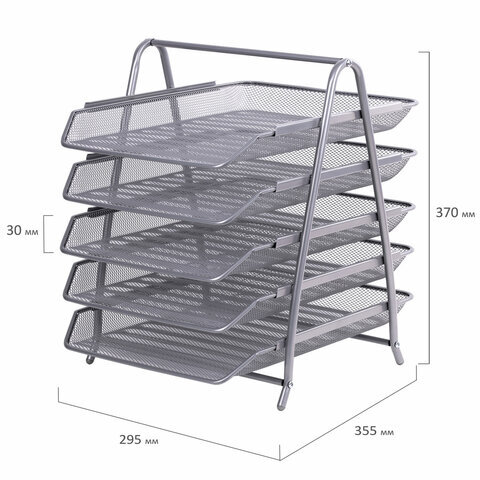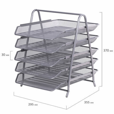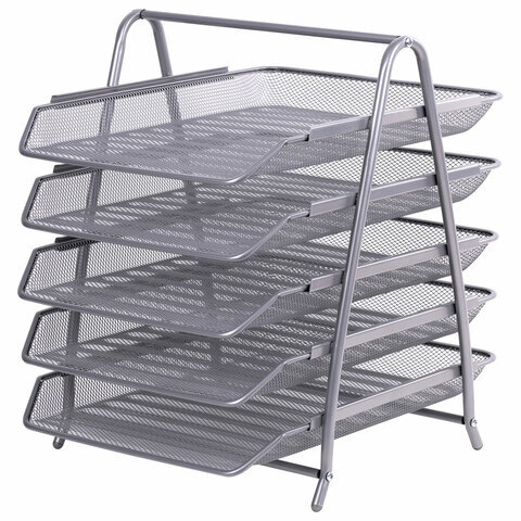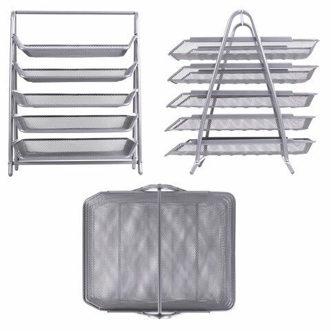 Лоток горизонтальный для бумаг BRAUBERG "Germanium", 5 секций, 370х355х295 мм, металл, серебро, 237972