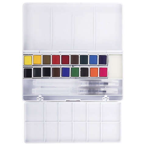 Акварель художественная кюветы НАБОР 18 цветов по 3,5 г, пластиковый кейс, BRAUBERG ART CLASSIC, 191769