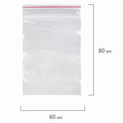 Пакеты с замком ZIP LOCK "зиплок", комплект 100 шт., 60х80 мм, ПВД, толщина 35 микрон, BRAUBERG, 606207