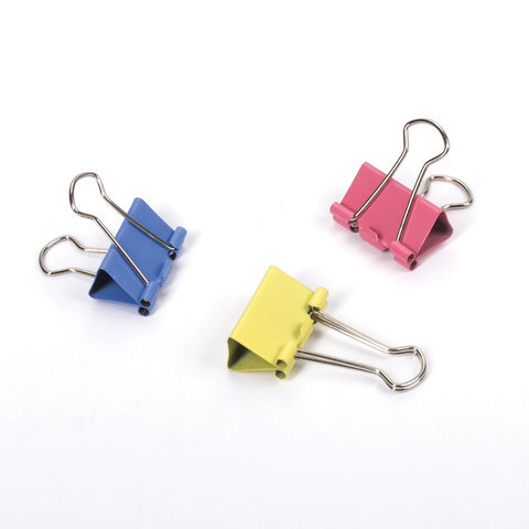 Зажимы для бумаг STAFF "Profit", КОМПЛЕКТ 12 шт., 25 мм, на 100 листов, цветные, картонная коробка, 225157