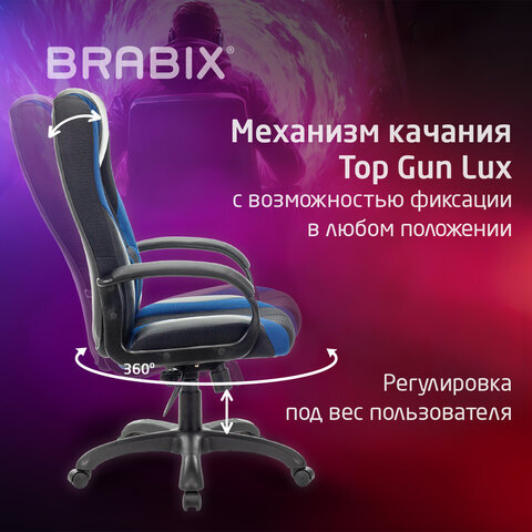 • Кресло BRABIX "Rapid GM-102" специально разработано для профессиональных геймеров, проводящих много часов подряд за игрой, не меняя положения тела.