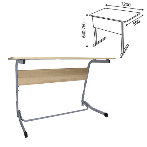 Стол-парта 2-местный регулируемый "Олимп", 1200х500х640-760 мм, рост 4-6, серый каркас, ЛДСП клён