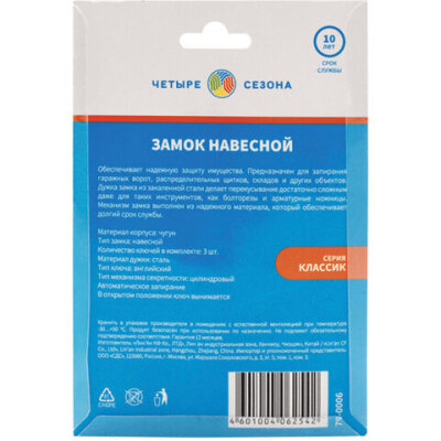 Замок навесной, ширина 60 мм, чугун, дужка d-8,4 мм, английский, 3 ключа, в блистере, 79-0006