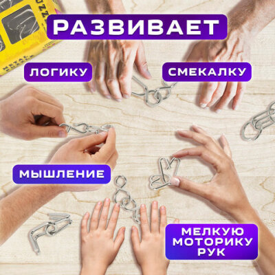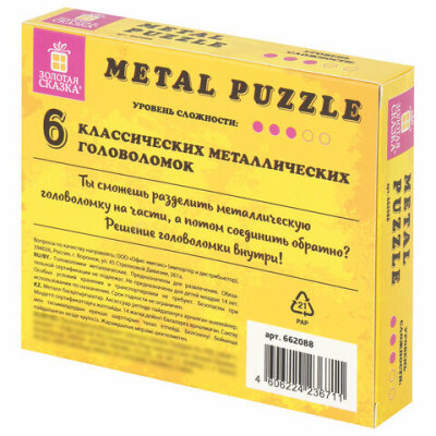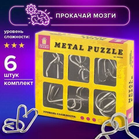Головоломки металлические ЗОЛОТАЯ СКАЗКА (уровень сложности "ЛЮБИТЕЛЬ"), набор 6 штук, 662088
