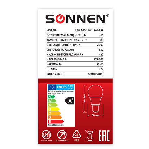 | Мощность эквивалентной по световому потоку лампы накаливания | 85 Вт |