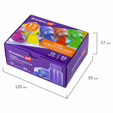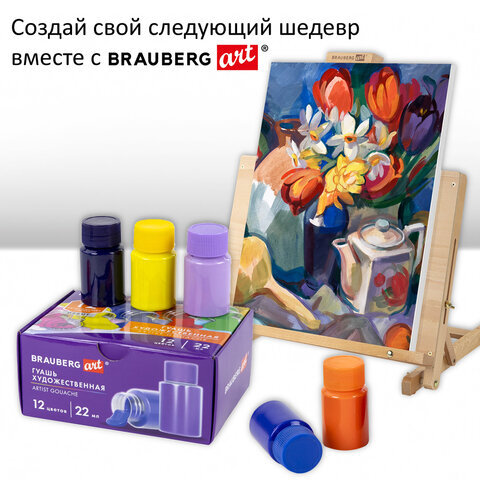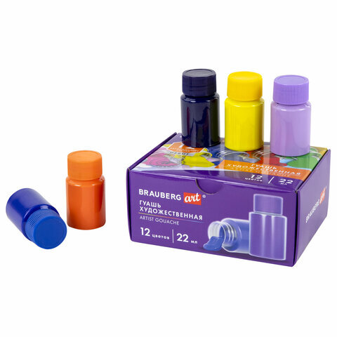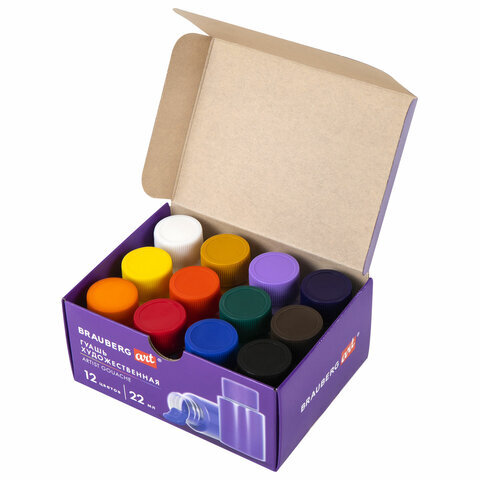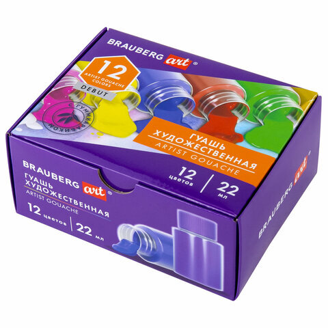Гуашь художественная НАБОР 12 цветов по 22 мл, с гуммиарабиком, BRAUBERG ART DEBUT, 192356
