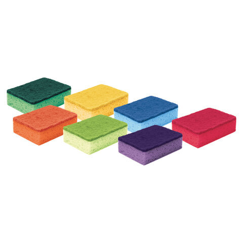 Губки для посуды 10х7х3 см, КОМПЛЕКТ 7 шт., MAXI, поролон с абразивным слоем, COLOR, YORK, 30180