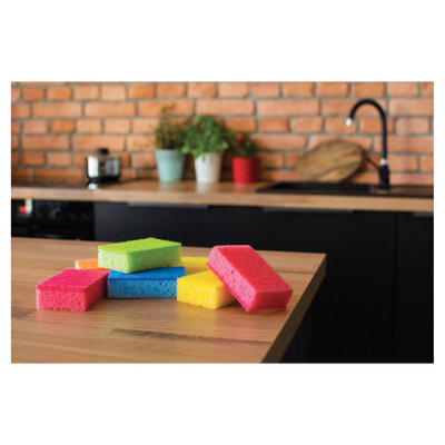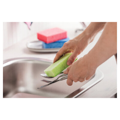 Двусторонние губки для посуды YORK подходят для удаления стойких загрязнений. Образуют больше пены, чем стандартные губки, снижая расход моющих средств.