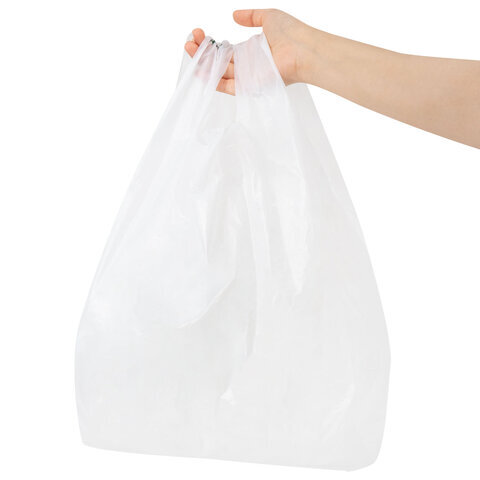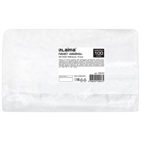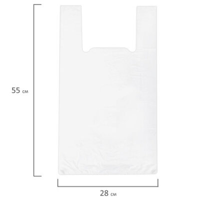 Пакет "майка" КОМПЛЕКТ 100 штук, 28+15х55, ПНД белый, 15 мкм, LAIMA, 700787