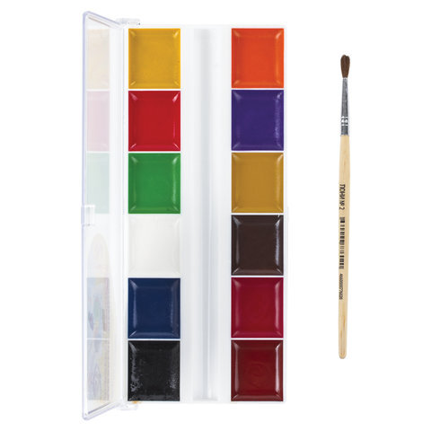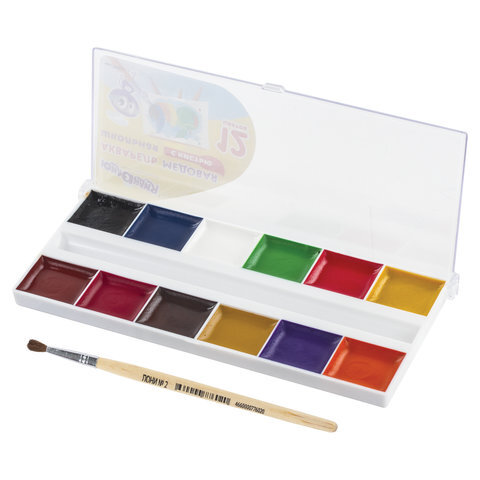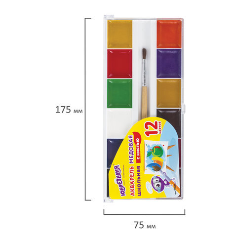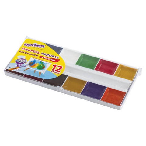 Краски акварельные ЮНЛАНДИЯ "ШКОЛЬНЫЕ", 12 цветов, медовые, увеличенный объем кювет, С КИСТЬЮ, пластиковая коробка, 191527