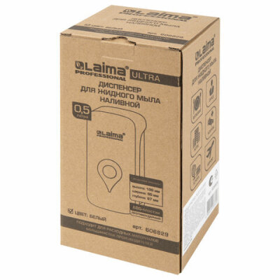 Дозатор для жидкого мыла ULTRA LAIMA PROFESSIONAL, НАЛИВНОЙ, 0,5 л, белый, ABS-пластик, 606829