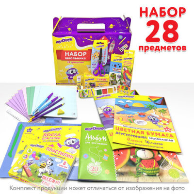 Набор школьных принадлежностей в подарочной коробке ЮНЛАНДИЯ "К ШКОЛЕ ГОТОВ", 28 предметов, 880120