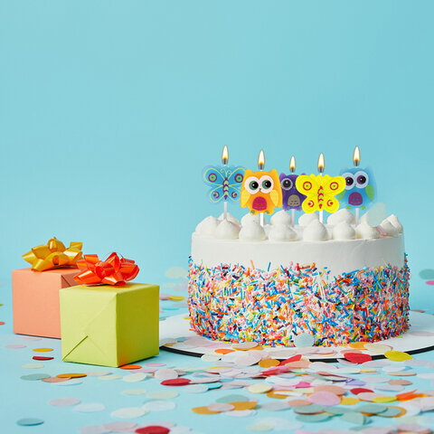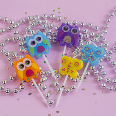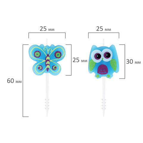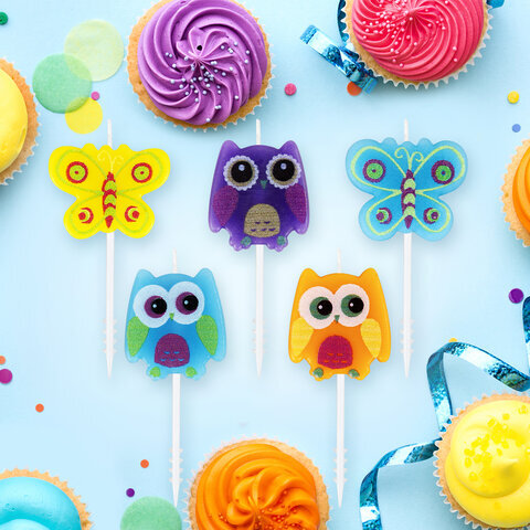 Свечи фигурные для торта на шпажках "Совы и бабочки", 5 шт., 2,5х3/2,5х2,5 см, ЗОЛОТАЯ СКАЗКА, 591465