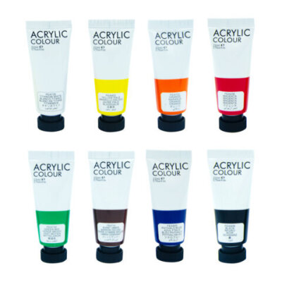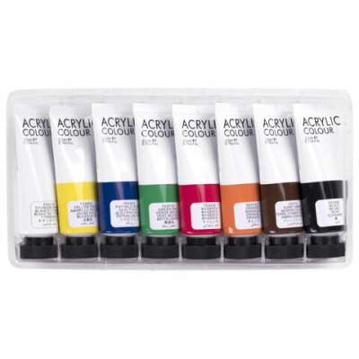 Краски акриловые художественные 8 цветов в тубах по 22 мл, BRAUBERG HOBBY, 192405