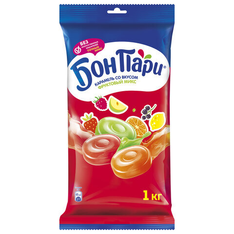 Леденцы БОН ПАРИ "Фруктовый Микс", ассорти 6 вкусов, 1 кг, 11625459