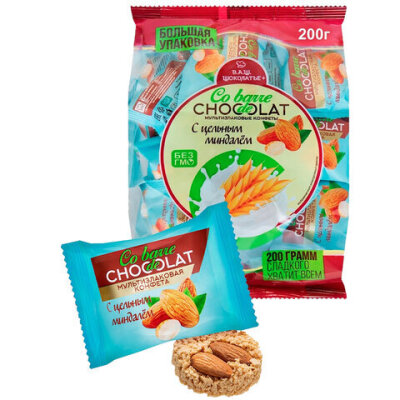 Конфеты мультизлаковые CO BARRE DE CHOCOLAT с цельным миндалем, 200 г, пакет, БП-00001137