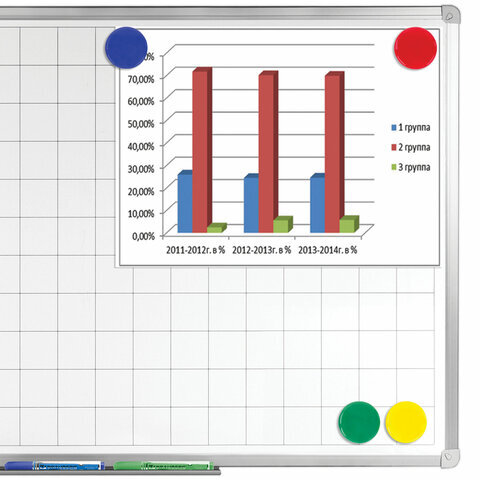 Магниты BRAUBERG круглой формы большого диаметра с пластиковым покрытием для магнитно-маркерных досок.
