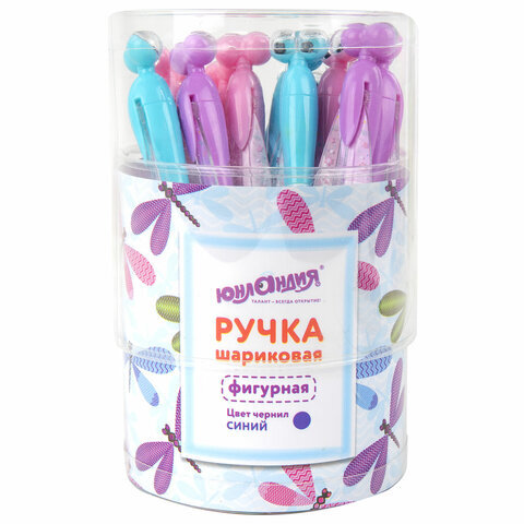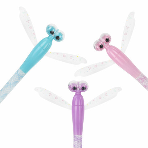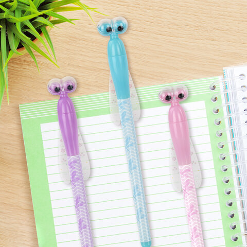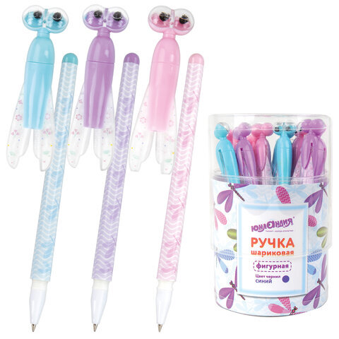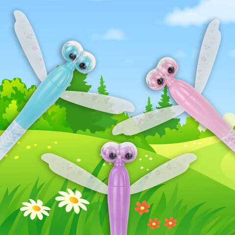 Ручка фигурная шариковая ЮНЛАНДИЯ "Стрекоза", корпус ассорти, СИНЯЯ, пишущий узел 0,7 мм, 143789