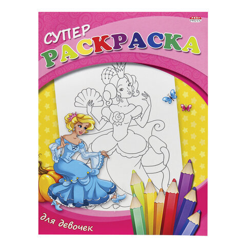 Книжка-раскраска СУПЕР РАСКРАСКА, АССОРТИ, 200х280 мм, 80 страниц, ПП