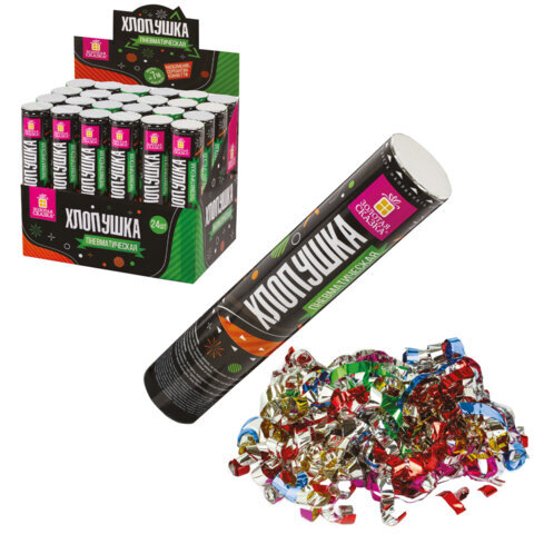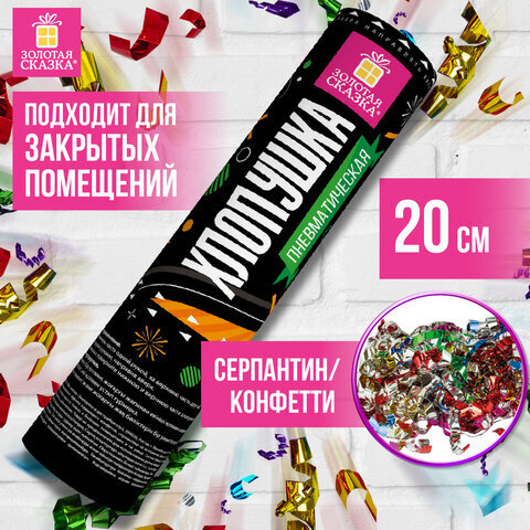 Хлопушка пневматическая ЗОЛОТАЯ СКАЗКА 20 см, фольга, серпантин/конфетти, ассорти, 591472