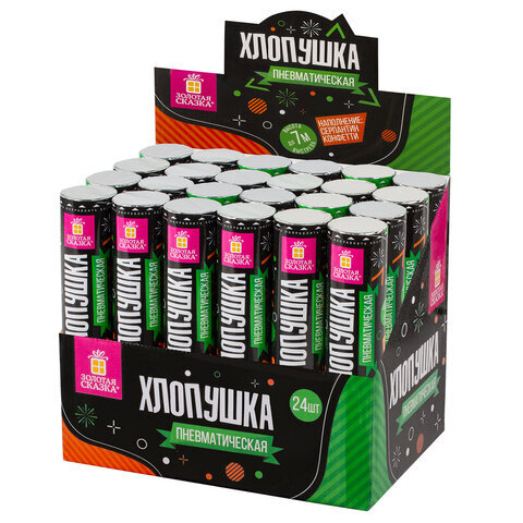 Пневматическая хлопушка ЗОЛОТАЯ СКАЗКА предназначена для создания отличного настроения и атмосферы настоящего веселья на любом празднике - новогодней вечеринке, торжестве в честь Дня Рождения, выпускном, корпоративе или любом другом праздничном событии.