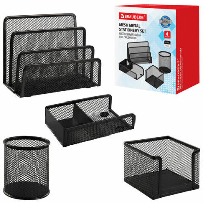 • Настольный набор из металла BRAUBERG "Germanium" - это готовое решение для офиса. Позволяет содержать в порядке все письменные принадлежности и документы, а также эффективно их использовать.