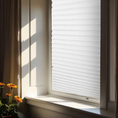 Жалюзи-плиссе, штора тканевая самоклеящаяся BRABIX, 60х180 см, СТАНДАРТ+, 80 г/м2, цвет белый, 1 шт., 700007