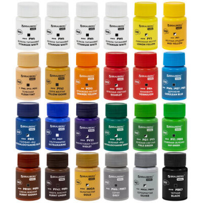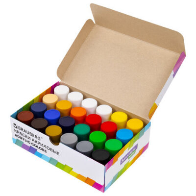 Краски акриловые художественные 24 шт., 21 цвет в банках по 22 мл, BRAUBERG HOBBY, 192412