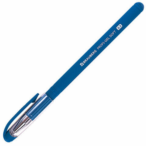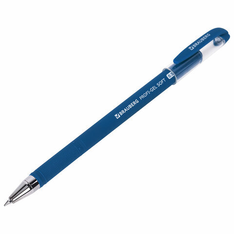 Ручка гелевая BRAUBERG "Profi-Gel SOFT", СИНЯЯ, линия письма 0,4 мм, стандартный наконечник 0,5 мм, прорезиненный корпус SOFT-TOUCH, 144130